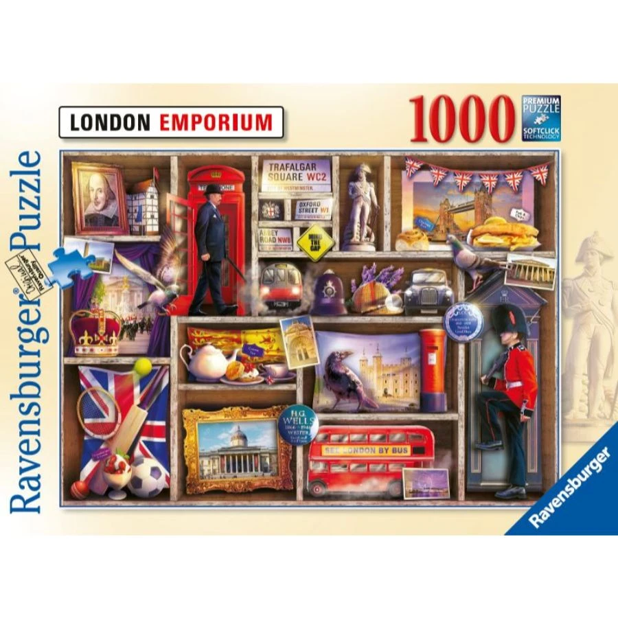 Ravensburger Puzzle 1000 Piece London Emporium is an exclusive jigsaw developed and designed in the UK by the giant puzzle maker Ravensburger. Constructed with 1000 unique puzzle pieces, the jigsaw board depicts a memory box that showcases City Gent, Tate Modern, Buckingham Palace, Cream Tea, Crown Jewels, Guardsman, Union Flag, Lord’s Cricket Ground, Double-decker London Bus, The National Gallery, Wembley, Chelsea Bun, Fish & Chips and more. Designed by Dynamo, an editorial and illustration studio, this picture is rich in detailing and pose moderate challenges to the puzzler. Made from FSC certified, premium grade cardboard material, each puzzle piece is one of a kind and perfectly fits the board. The board surface is coated with a matt linen finish that ensures a comfortable puzzling experience without eye fatigue. When completed, the board measures around 70 x 50 cm in dimension. 1000 Piece London Emporium is recommended for adults above the age of 12 years.