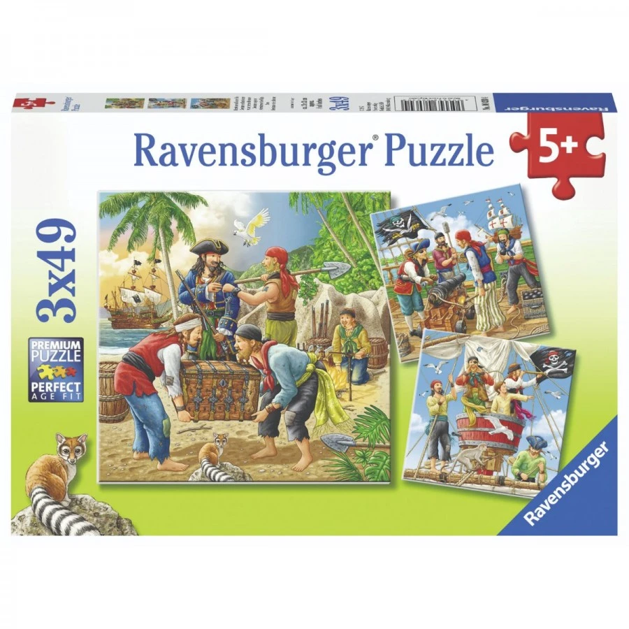 Ravensburger High Seas Adventure puzzle is a set of three puzzles that showcases three fun pirate scenes. The first puzzle has pirates fighting each other cannons. The second puzzle shows pirates on their ship, and the third one shows pirates finding treasures. The High Seas Adventure puzzle will appeal to the pirate in every child. The puzzles have an engaging design and child-friendly format. Ravensburger is known for making highly detailed and superior-quality puzzles. All puzzles are made with premium quality cardboard and linen-structured paper to reduce the amount of glare on the puzzle image. All puzzle pieces are made with soft-click technology and thus have a perfect interlocking fit.